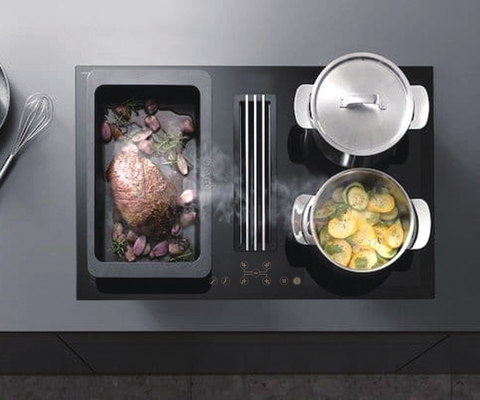 Rohs חומר נג קריסטל זכוכית מלוטש שחור 4 בישול אזור כיריים אינדוקציה סיר עם Downdraft extractor